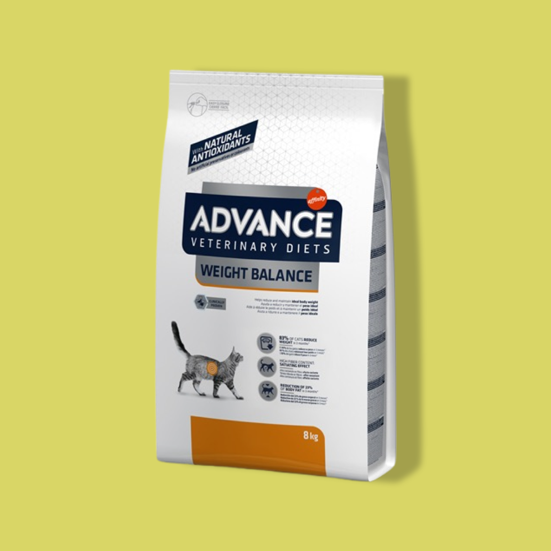 Advance Veterinary Diet Cat Weight Balance is een compleet (volledig) dieetvoer voor katten om overgewicht te verminderen en vetverbranding te reguleren. Ideaal voor katten die te zwaar zijn en wee..... Lees omschrijving »