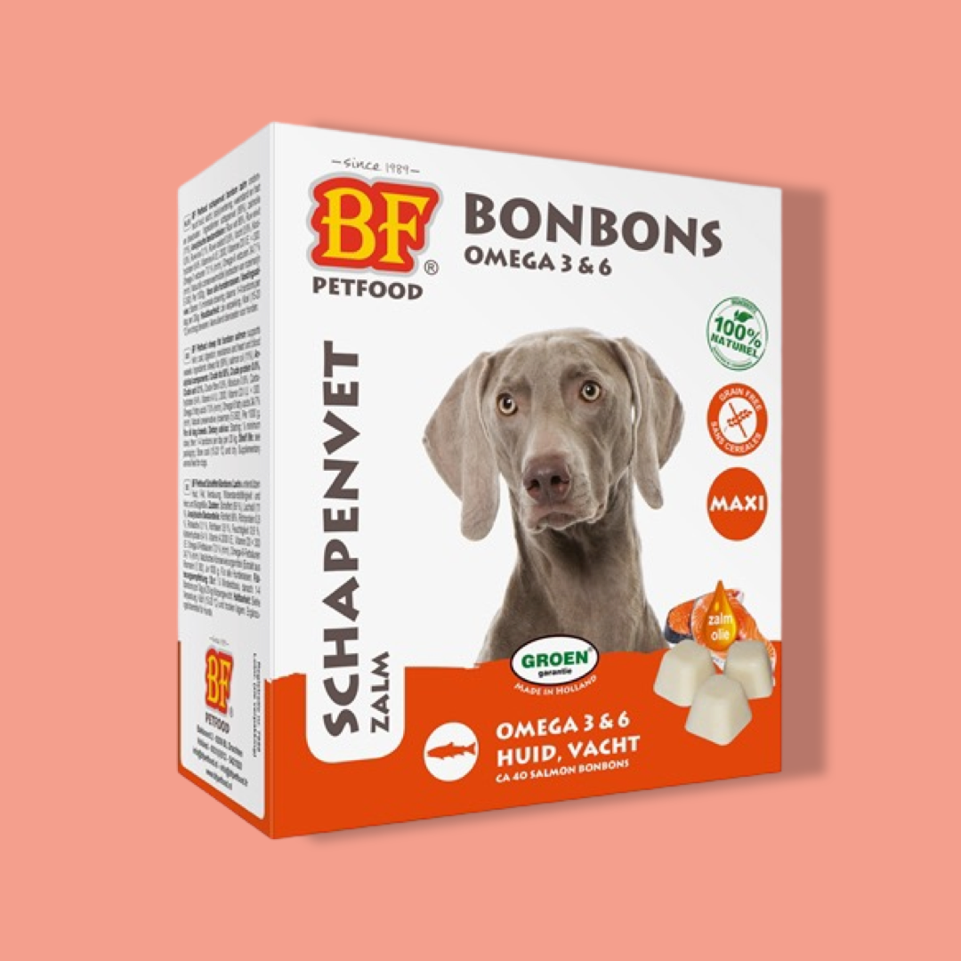 De originele BF Petfood® schapenvet bonbon zalmolie is een natuurlijk en bijzonder probaat middel ter ondersteuning van huid, vacht, (spijs)vertering en weerstand. Het is tevens een uitzonderlijk g..... Lees omschrijving »