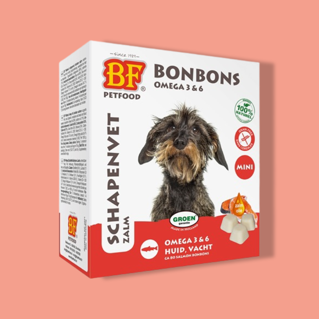 De originele BF Petfood® schapenvet bonbon zalmolie is een natuurlijk en bijzonder probaat middel ter ondersteuning van huid, vacht, (spijs)vertering en weerstand. Het is tevens een uitzonderlijk g..... Lees omschrijving »