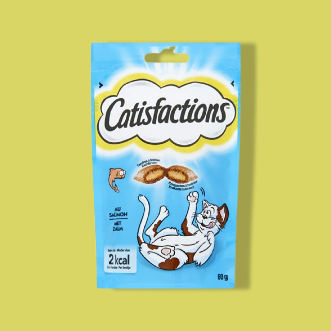 Catisfactions Zalm aanvullende diervoeding voor de kat. Het is een heerlijk krokante kattensnack met smakelijk zachte vulling. Door de waanzinnige smaaksensatie zijn Catisfactions onweerstaanbaar v..... Lees omschrijving »