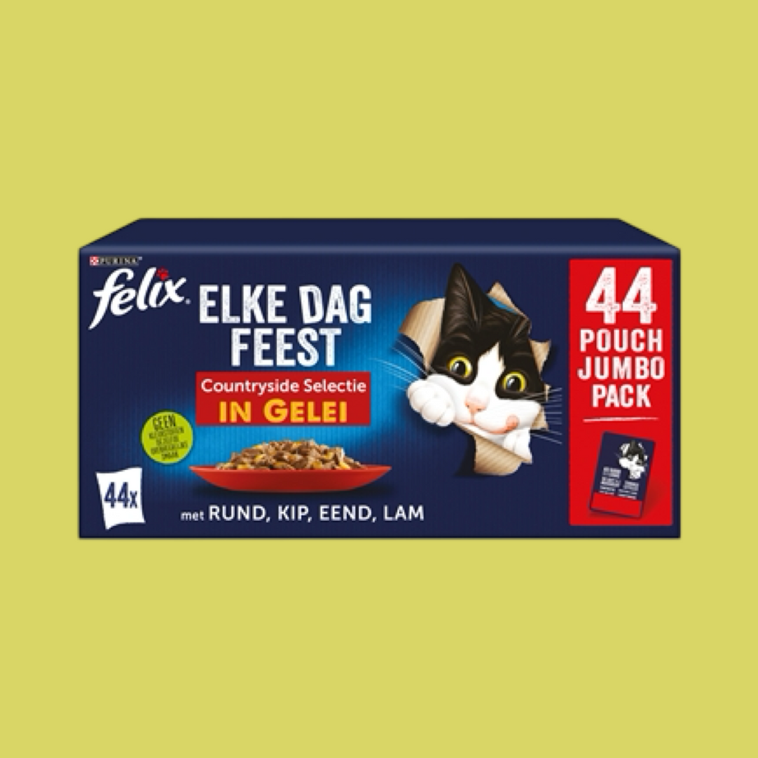 De Felix Elke Dag Feest Countryside Selectie Rund/Kip/Groenten 44X85 gr is compleet en gebalanceerd natvoer voor katten van kwalitatief hoogwaardige ingrediënten. Deze onweerstaanbare maaltijden zi..... Lees omschrijving »