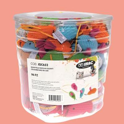 Deze Imac Gekleurde Muis In Pot van 5,5 cm per 96 stuks is plastic pot met assorti speelmuizen voor de kat in oranje, blauw, roze en groen. Deze vrolijk gekleurde muisjes zijn goed voor urenlang sp..... Lees omschrijving »