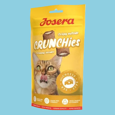De Josera Crunchies Cheese is een aanvullende snack voor volwassen katten met een knapperige buitenkant en een romige vulling met kaassmaak. Deze crunchy kattensnack combineert bite met een zachte ..... Lees omschrijving »