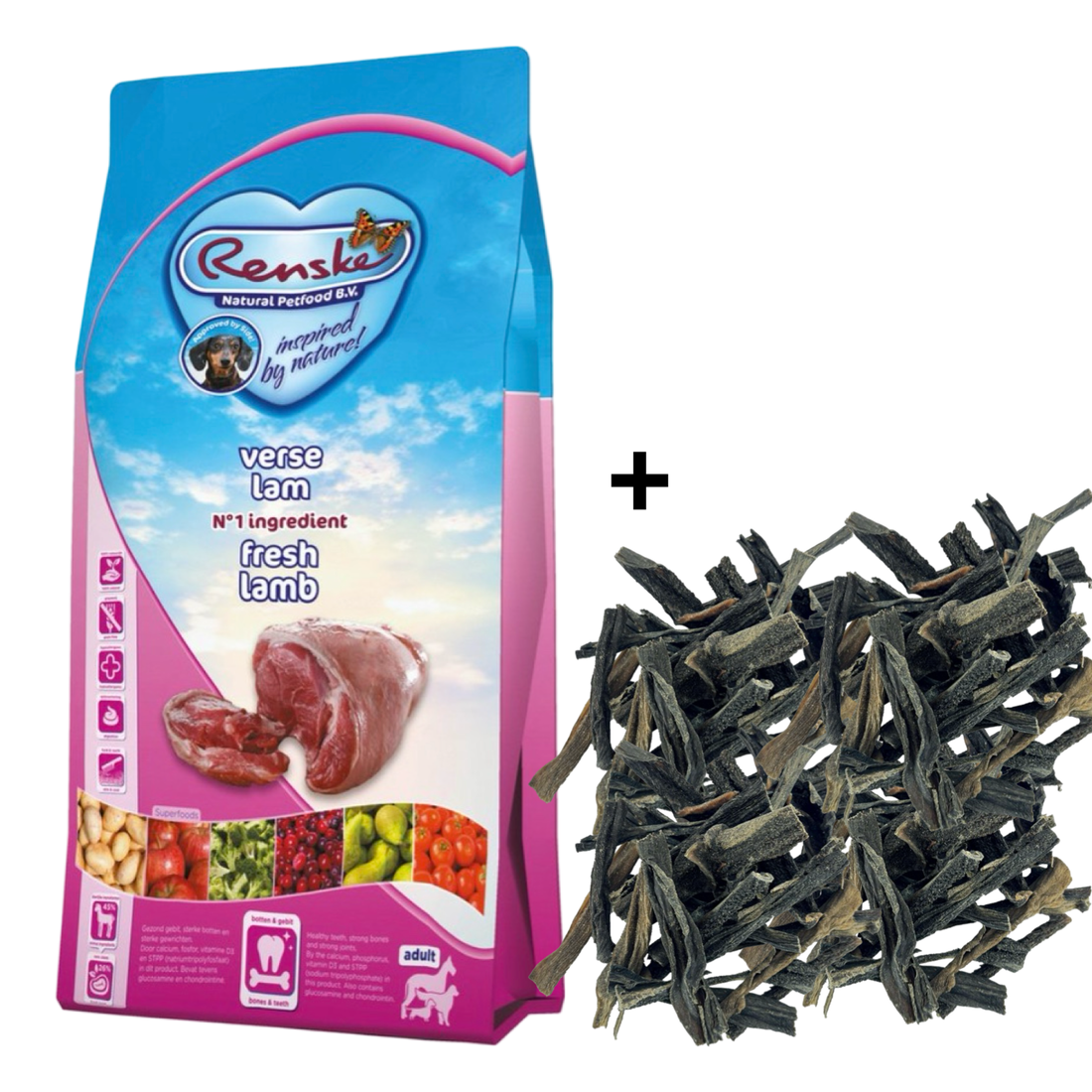 Combideal Renske - Super Premium Adult Lam Graanvrij Hondenvoer 12 KG + Pawty Pens Gezonde Hondensnack Voordeelverpakking (1 KG) Renske Super Premium Adult - Lam / GraanvrijEen complete voeding met..... Lees omschrijving »