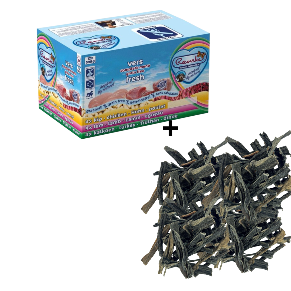 Combideal Renske Variatiebox Bobby 12 x 395 Gram + Pawty 100% Pens Gezonde Hondensnack Voordeelverpakking ( 1 KG)