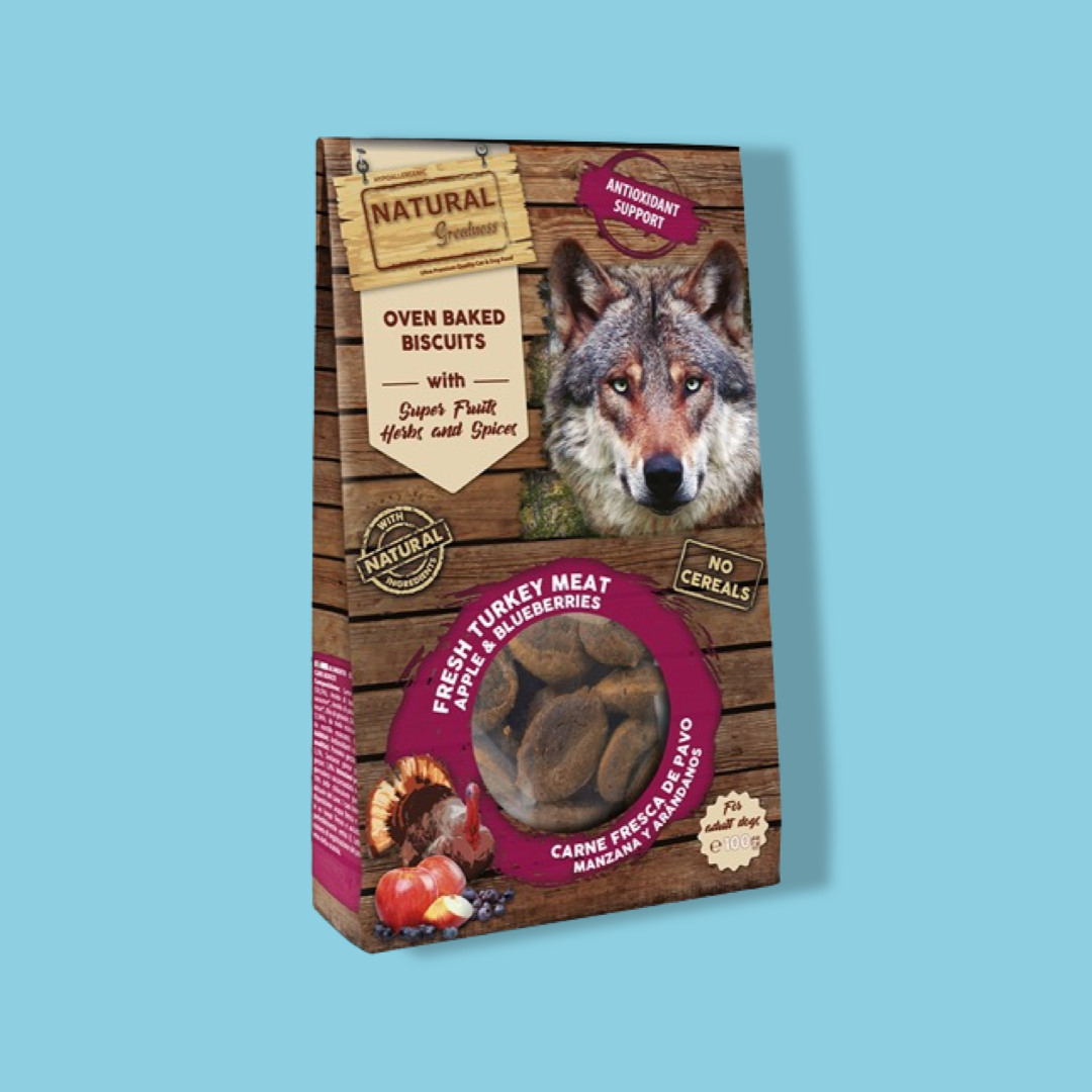 Moet je nou eens kijken, wat zijn dit voor heerlijke snacks? Nou, de Natural Greatness Antioxidant Support Hondensnack zijn graanvrij en hypoallergene hondenkoekjes met vers kalkoenvlees, appel en ..... Lees omschrijving »
