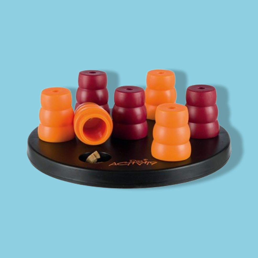 Dit strategiespel is uitermate geschikt voor kleinere honden door de afmeting ervan. Op het bord staan 7 kegels die je stevig vast kunt drukken. Jouw hond moet daardoor echt de kegels optillen om..... Lees omschrijving »