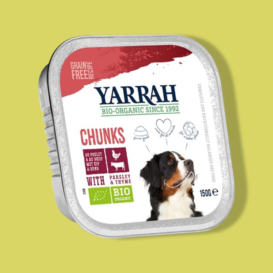 De Yarrah Dog Alu Brokjes Met Peterselie / Tijm In Saus Graanvrij zijn smakelijke brokjes in saus met rund, peterselie en tijm. De toevoeging van peterselie en tijm is goed voor de nieren, spijsver..... Lees omschrijving »