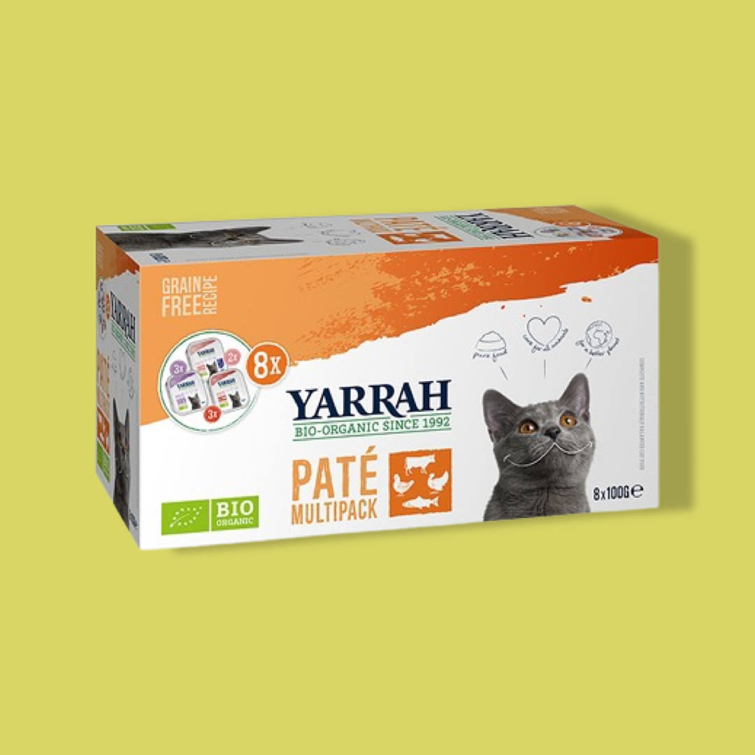 Yarrah - Organic Kat Multipack Pate Zalm / Kalkoen / Rund Kattenvoer 8 x 100 gram